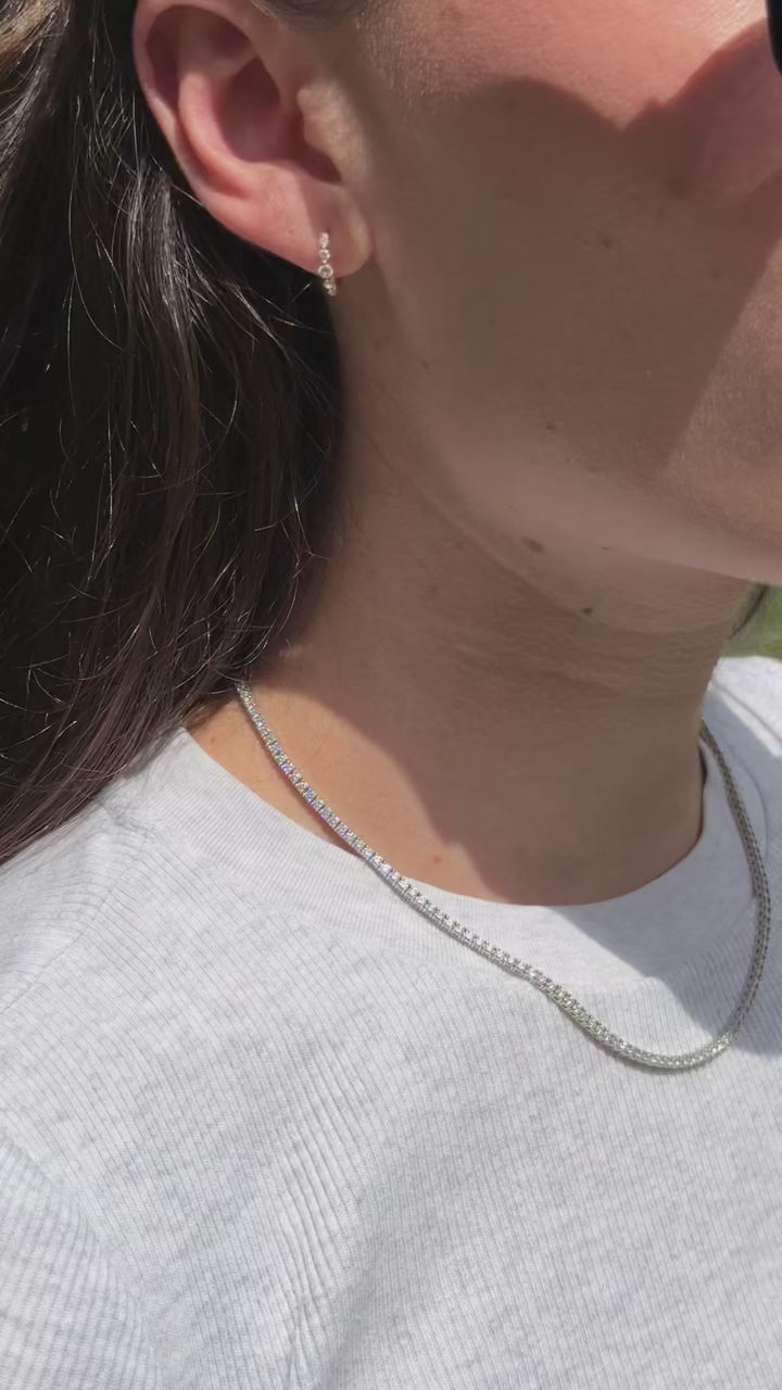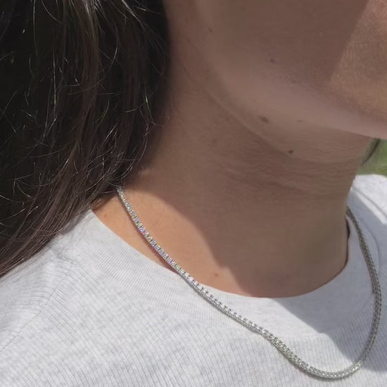 This tennis necklace is crafted in 14k white gold and set with 5.25 carats of radiant, lab-grown diamonds, with each one hand-selected for its exceptional brilliance. This piece is designed to elevate your everyday and add quiet luxury to any occasion. Wear it alone for a polished statement or layer it for a more fun!